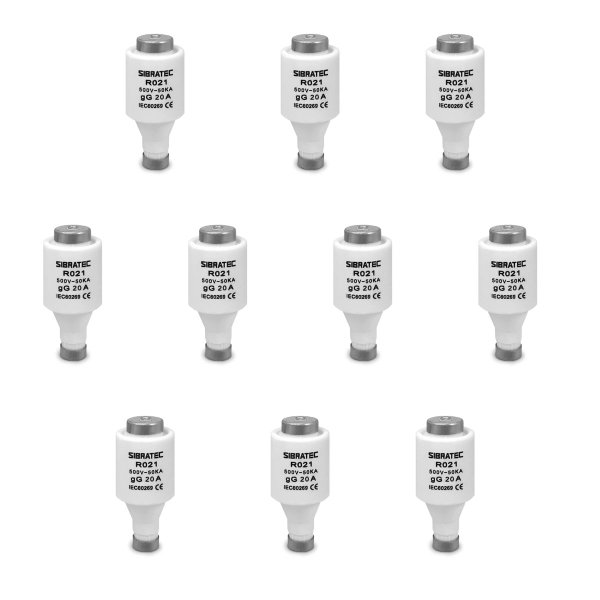 KIT 10 FUSÍVEIS DIAZED RETARDADO RO21 20A 500V 50KA SIBRATEC